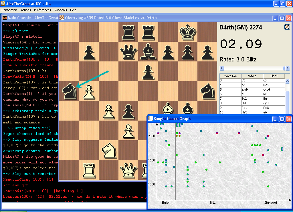Jin is an open source, cross platform, graphical client for chess servers, written in Java. Jin can run either as a standalone application (available at this website) or as an applet, directly from your browser (available at the chess server's website).